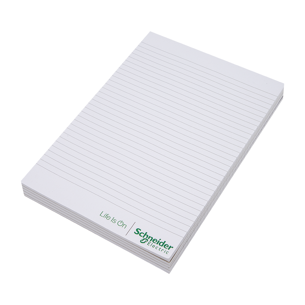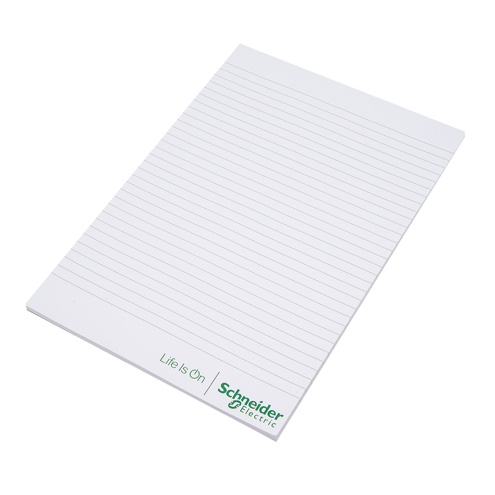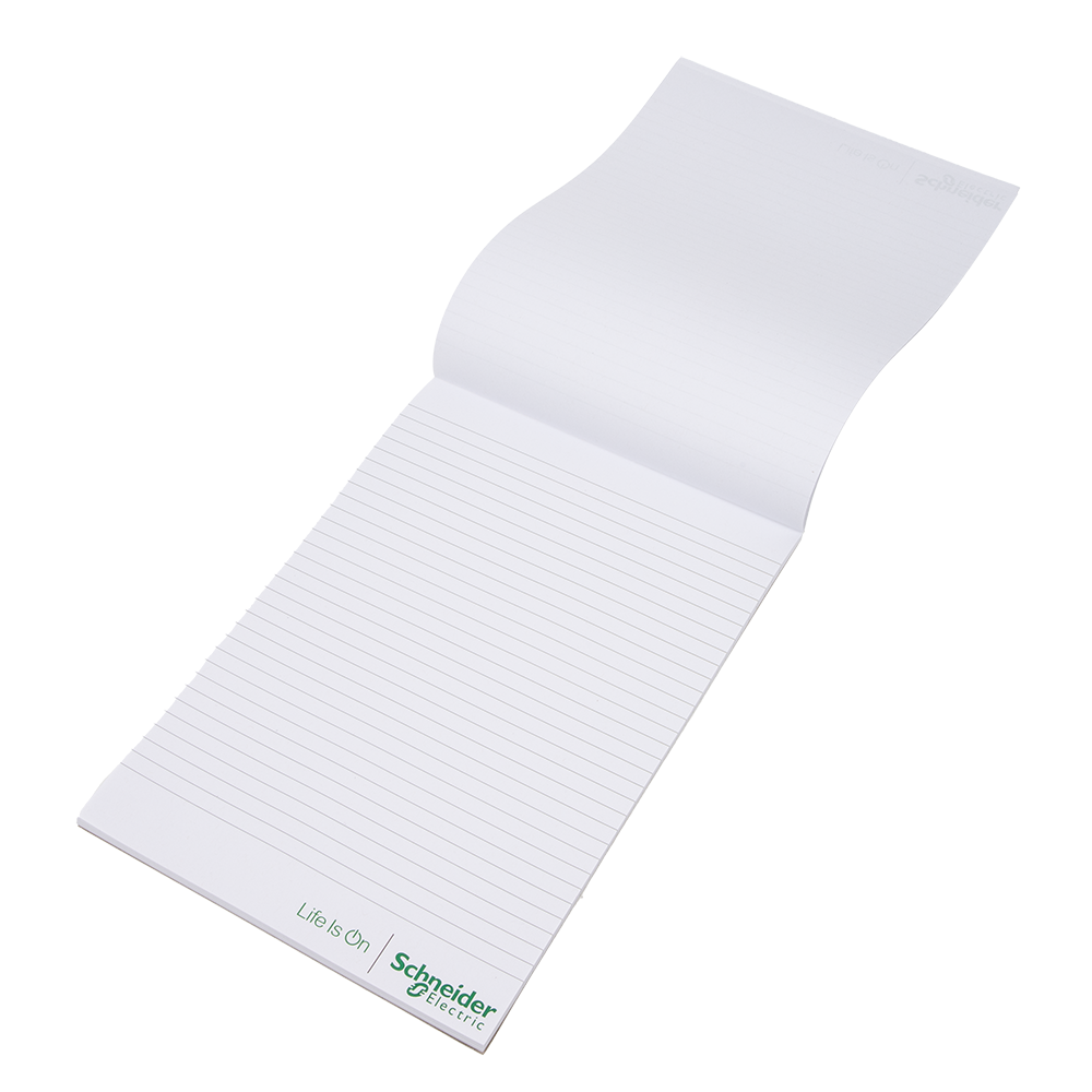 Perfect for notetaking, these A4 lined sheets are made from 100% recycled paper. Each sheet features the Life Is On | Schneider Electric wordmark to the bottom right corner.