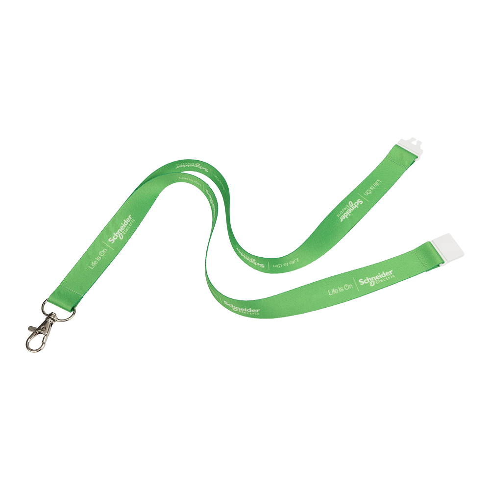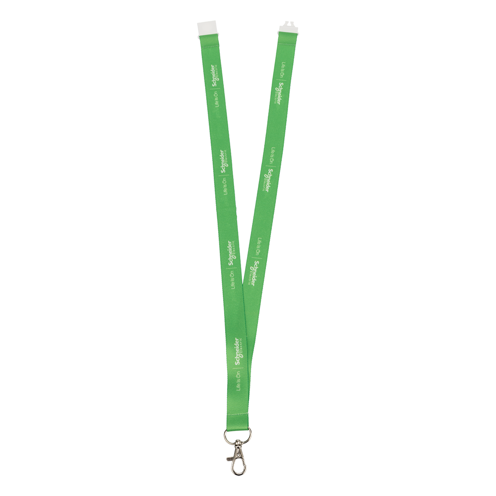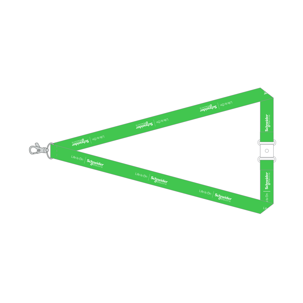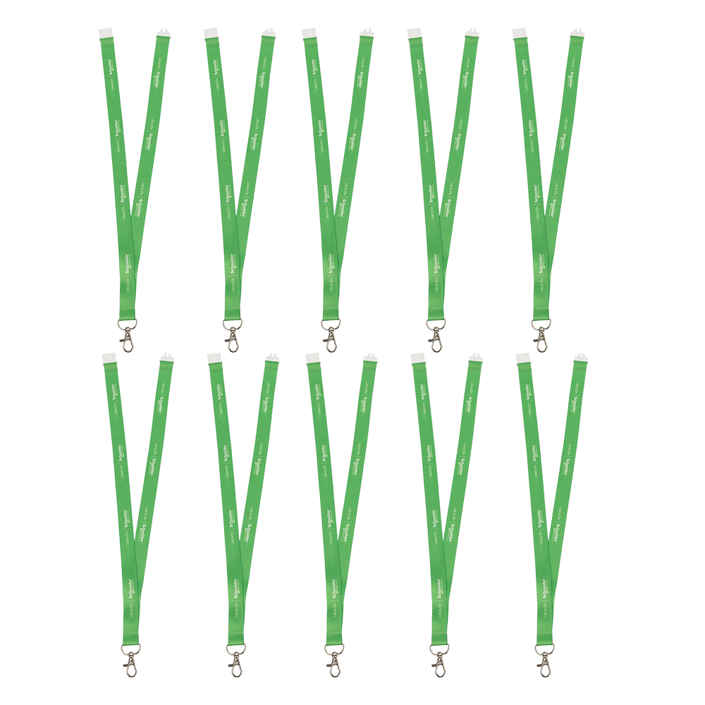 Pack of 10 green lanyards, each branded with a repeating Life Is On | Schneider Electric wordmark.